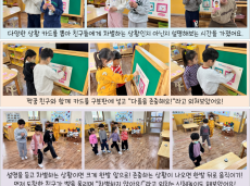 아이들은 항상 호기심을 가지고 매사에 궁금해합니다. 호기심이 가득한 우리 아이들이 새로운 것들을 놀이를 통해 자연스럽게 경험하는 반짝이는 시간을 만들겠습니다.