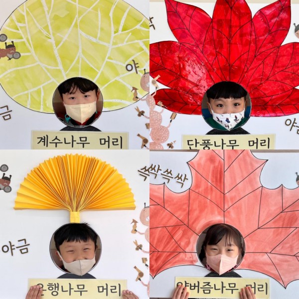 나뭇잎 머리모양을 해 본 어린이들도 너무 귀엽죠??