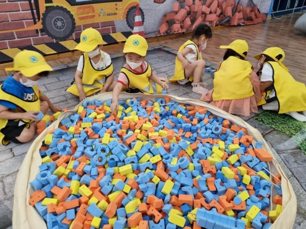놀이♥ 건축가 놀이 본문 유치원 강당에서 '직업체험: 건축가 놀이'를 진행하였어요. 무선조종 덤프트럭과 포크레인으로 신문지 벽돌 나르기, 외발수레를 이용해 벽돌을 운반하고 H빔에 벽돌쌓기,여러 가지 모양과 색깔의 블록으로 공주와 왕자가 사는 성을 만들기,포크레인 모양의 에어바운스 놀이안전 모자와 안전 조끼를 입은 우리 아이들이 참 귀엽죠?오늘은 건축가가 되어 즐거운 놀이를 할 수 있었답니다! 페이지 정보 원감 작성일2022-06-27 12:58 조회1,423회 댓글0건 관련링크 댓글목록 등록된 댓글이 없습니다. 이전글 다음글 목록